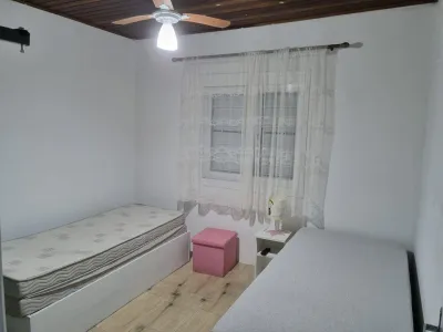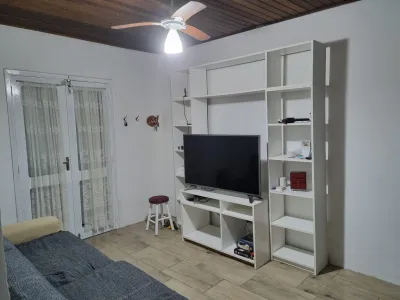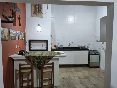 Casa geminada a poucas quadras do mar com 2 dormitórios (sendo 1 suíte), 1 banheiro social, sala de estar, sala de jantar, cozinha gourmet, área de serviço, churrasqueira, abrigo para 2 carros, sistema de alarme, portão eletrônico, playground, toda reformada, semi-mobiliada