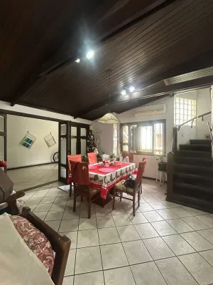 Sobrado em terreno amplo, o primeiro pavimento é composto por living integrado de dois ambientes, sala de estar e sala de jantar, 01 dormitório com acessibilidade PNE ( portador de necessidades especiais) e banheiro acessível PNE ( portador de necessidades especiais), cozinha, dispensa de alimentos, garagem coberta e área de serviço, também dispõe de amplo pátio com piscina grande e anexo com churrasqueira, seguindo para o pavimento superior conta mais três dormitórios sendo 02 suítes com hidromassagem.