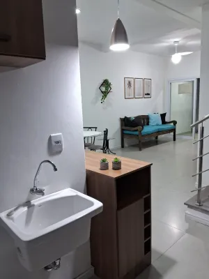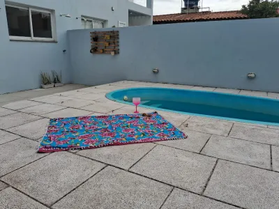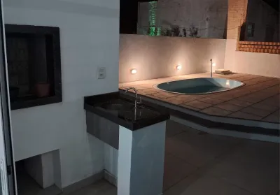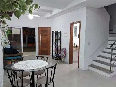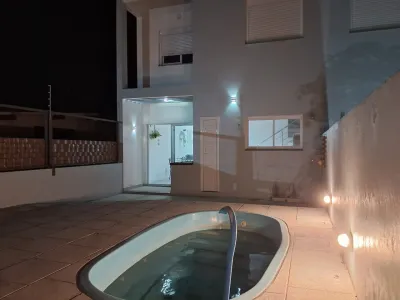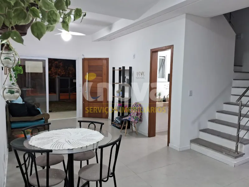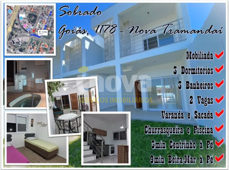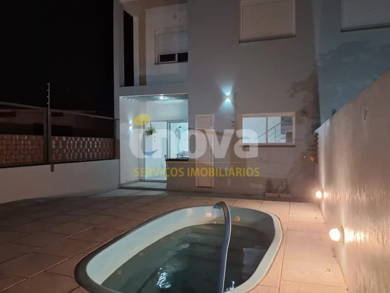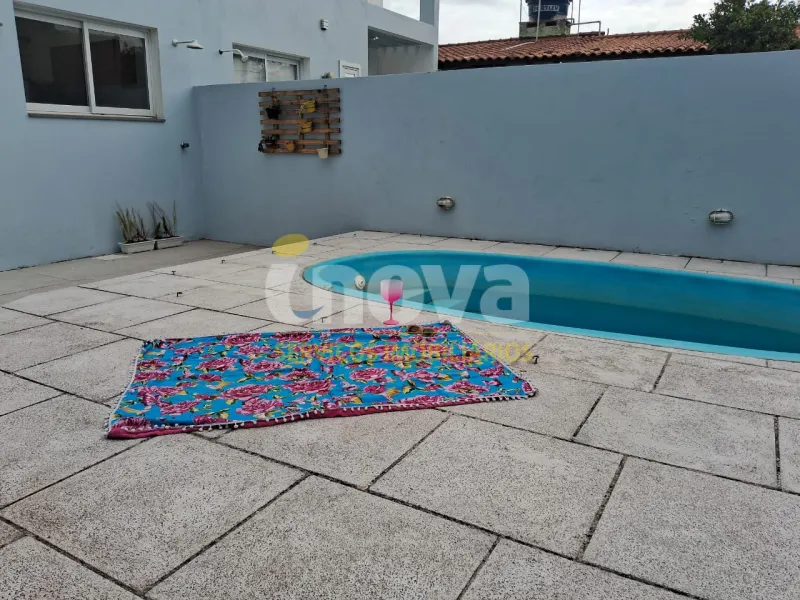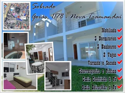 Sobrado duplex próximo ao mar, ao lado do centrinho de Nova Tramandai com 03 dormitórios com piso vinilico, sendo 01 suíte, sala de estar, sala de jantar, mobiliado, cozinha, 01 banheiro social, 01 lavabo , área de serviço, churrasqueira, garagem para 02 carros mas só um coberto, sacada, piscina com espera para água aquecida e laje de concreto