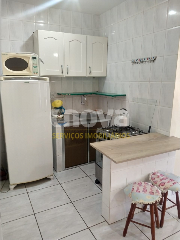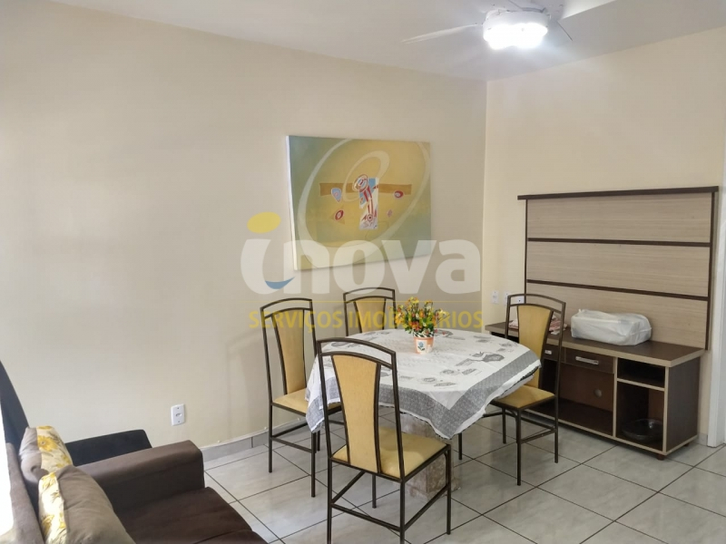 Apartamento com 02 dormitórios, sala de estar, cozinha conjugada, banheiro social e garagem coberta.