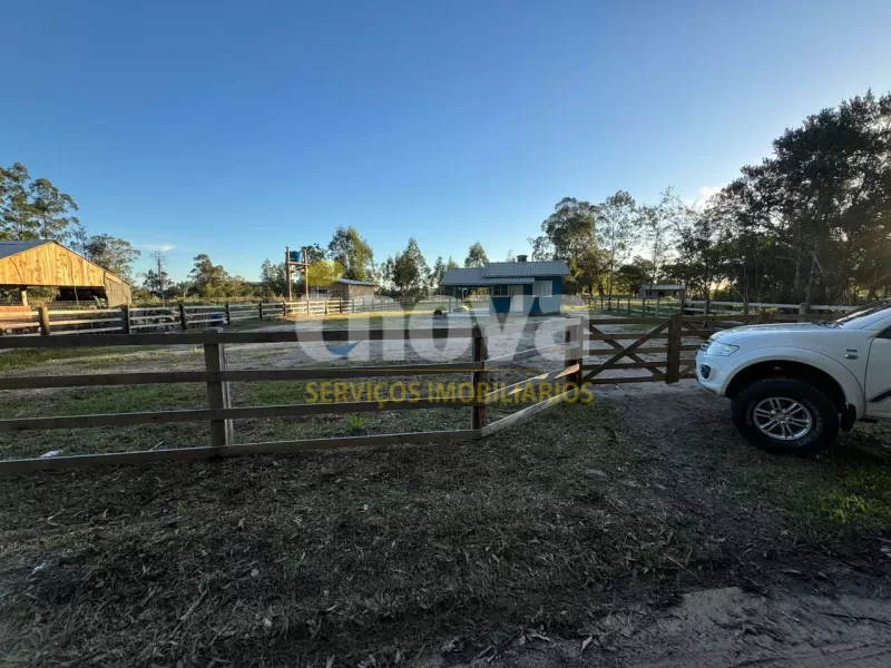 Terreno com 1.500m2 medindo 25x60, todo cercado, em ótima localização na estancia em Tramandaí, 9km da faixa, junto da conveniência, com agua, luz e internet, chalé novo nunca habitado, 1 dormitório, sala, cozinha e banheiro com moveis planejados, garagem.