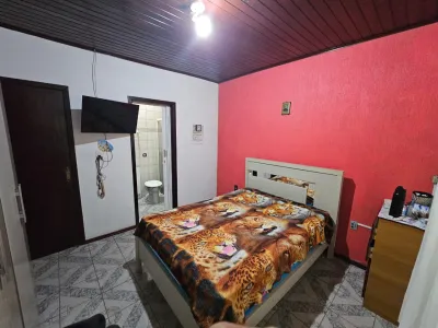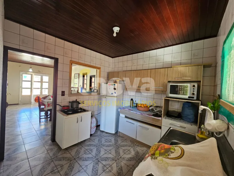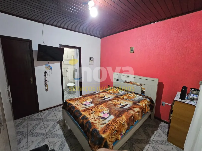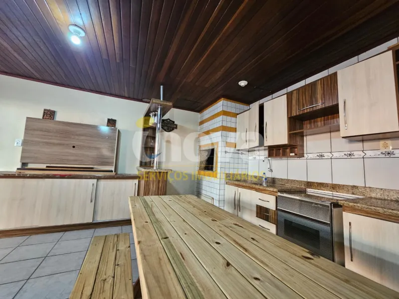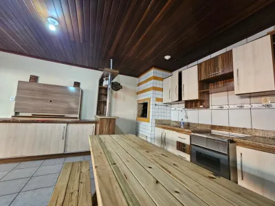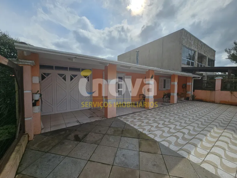 Casa com 3 dormitórios, sendo 1 suíte, sala com lareira,1 banheiro social, cozinha, anexo com 1 dormitório, 1 banheiro social, dispensa, ampla sala com churrasqueira, garagem fechada para 4 veículos