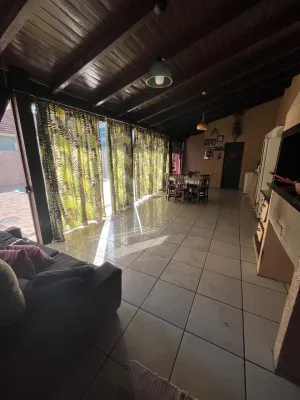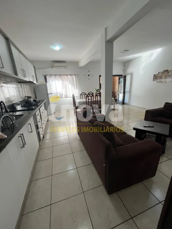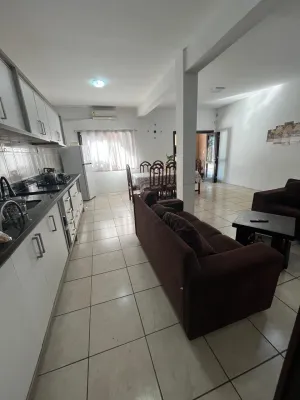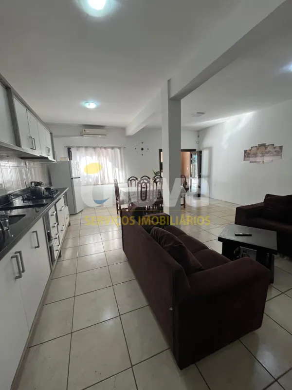 **Casa com 02 dormitórios, sendo os 02 suítes, sala de estar, 02 lavabo, cozinha, área de serviço, garagem, churrasqueira, piscina, mobiliado