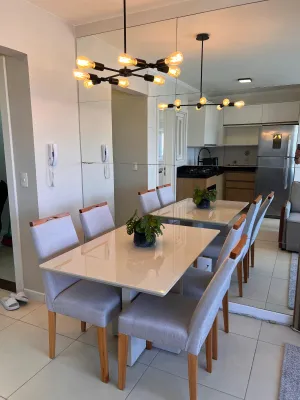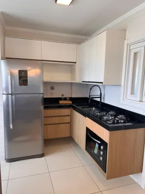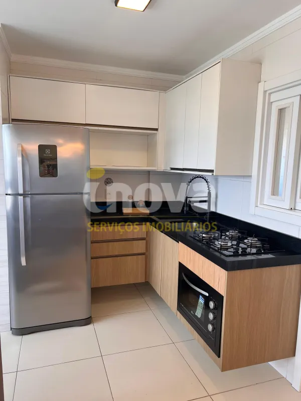 Apartamento com 03 dormitórios sendo um suíte, sala e cozinha integrada, churrasqueira, área de serviço, 01 vaga de garagem, mobiliado e decorado, prédio com três apartamentos por andar