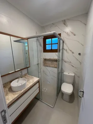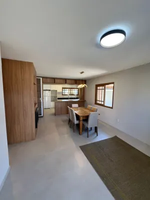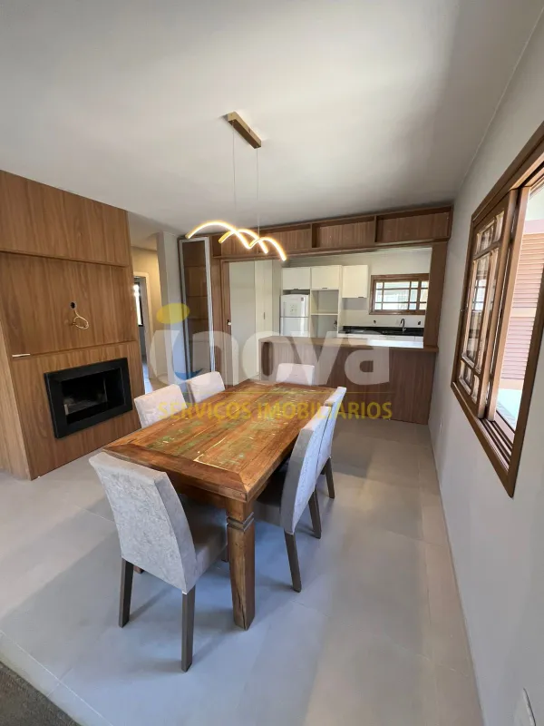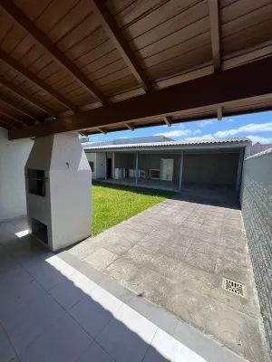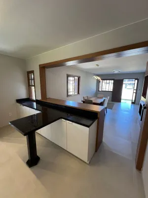 Casa semimobiliada, com 200m² - laje, 3 dormitórios (1 suíte), escritório, sala para dois ambientes integrada a cozinha, banheiro social, área de serviço, churrasqueira, anexo com garagem para até 3 carros, despensa e banheiro.