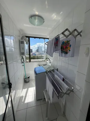 De frente para o mar, com 3 dormitórios, sendo 1 suíte, sala ampla de estar e jantar com sacada fechada e churrasqueira, cozinha, banheiro social, garagem, lavanderia, prédio com terraço na cobertura com piscina e salão de festas, zelador e 2 elevadores.