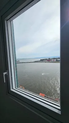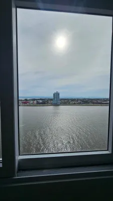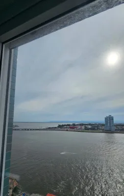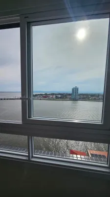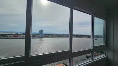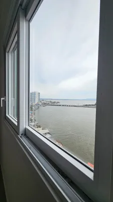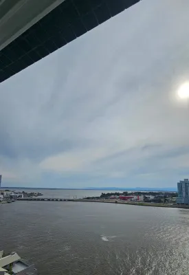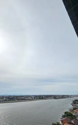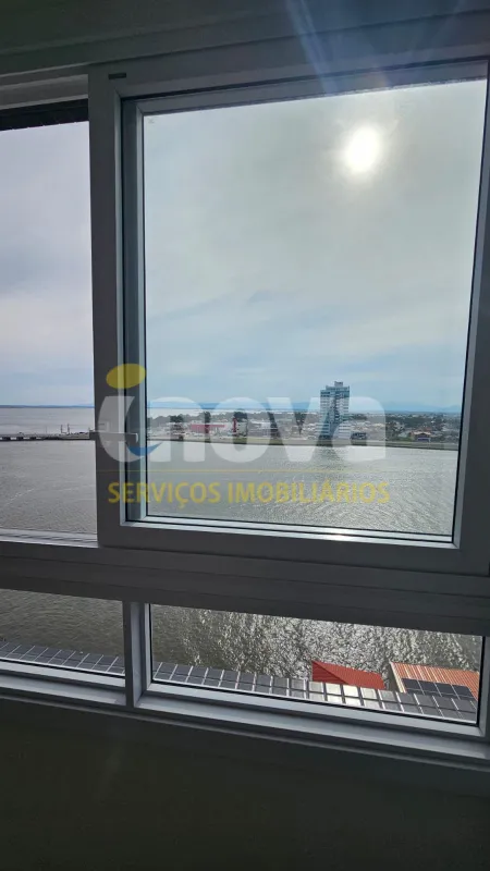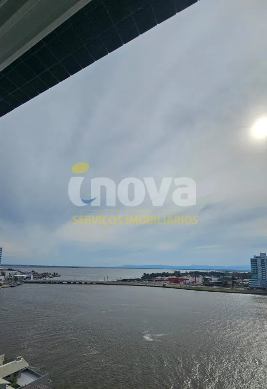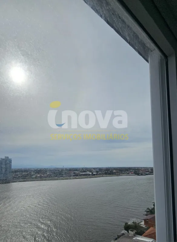 De frente para o rio, andar alto, com vista espetacular, com 2 dormitórios, sendo 1 suíte, sala ampla de estar e jantar com churrasqueira, cozinha, banheiro social, garagem, lavanderia, prédio com terraço na cobertura e salão de festas.