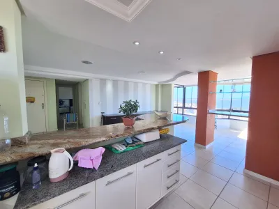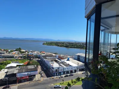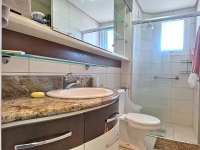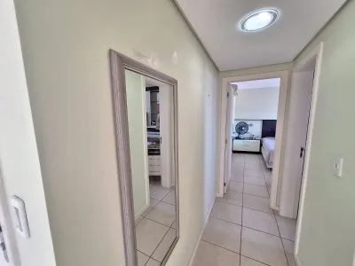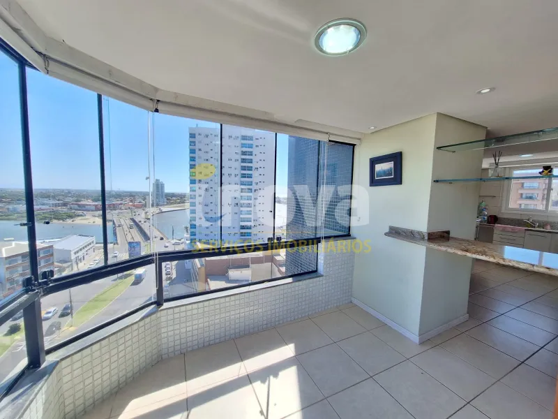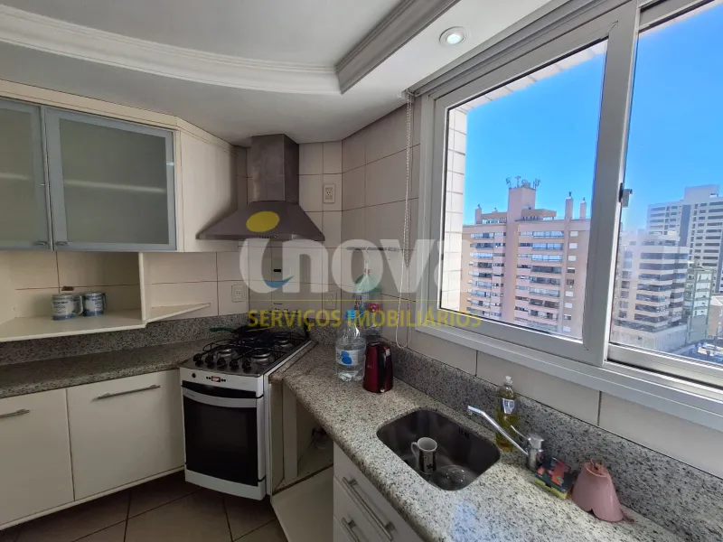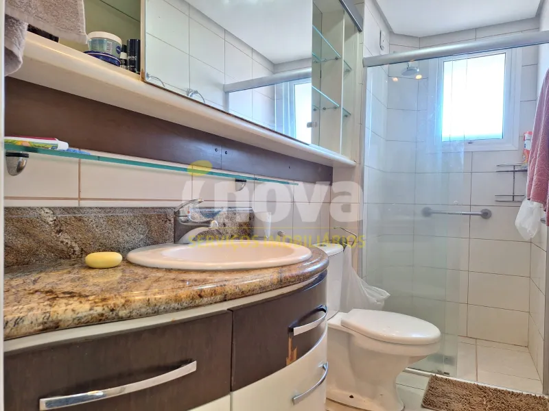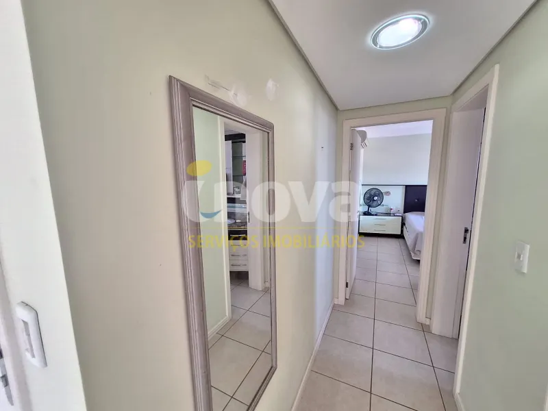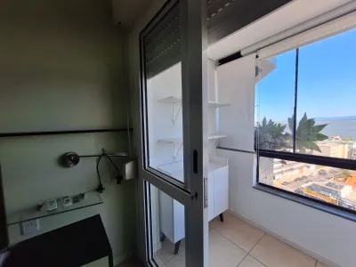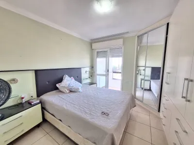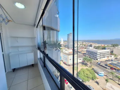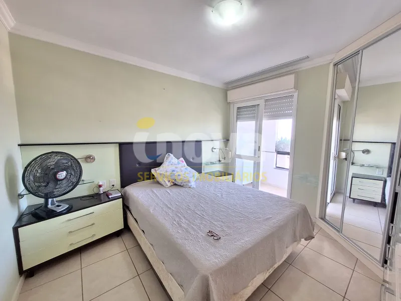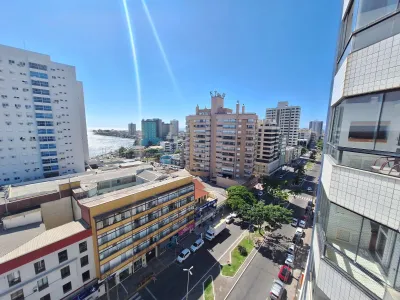 Em andar alto, com uma vista privilegiada apartamento mobiliado com 02 dormitórios, sendo 01 suíte, ar condicionado no quarto, sala de estar, sala de jantar, área de serviço, churrasqueira, box para carro, sacada, e água quente.