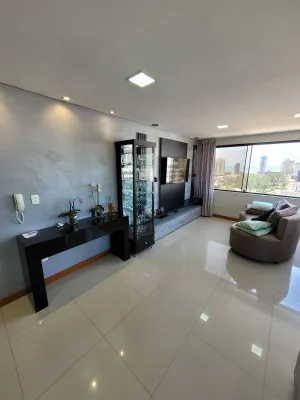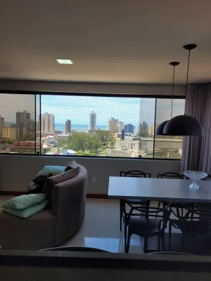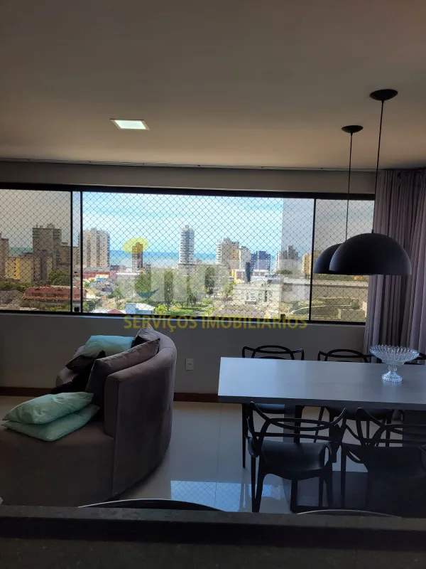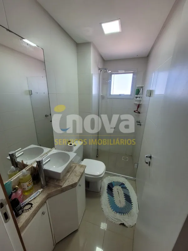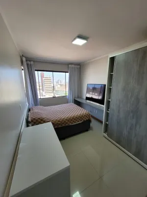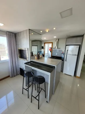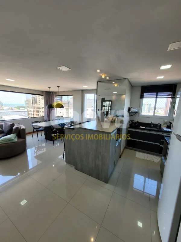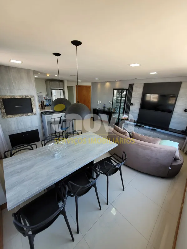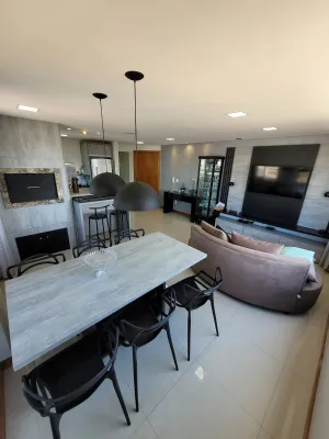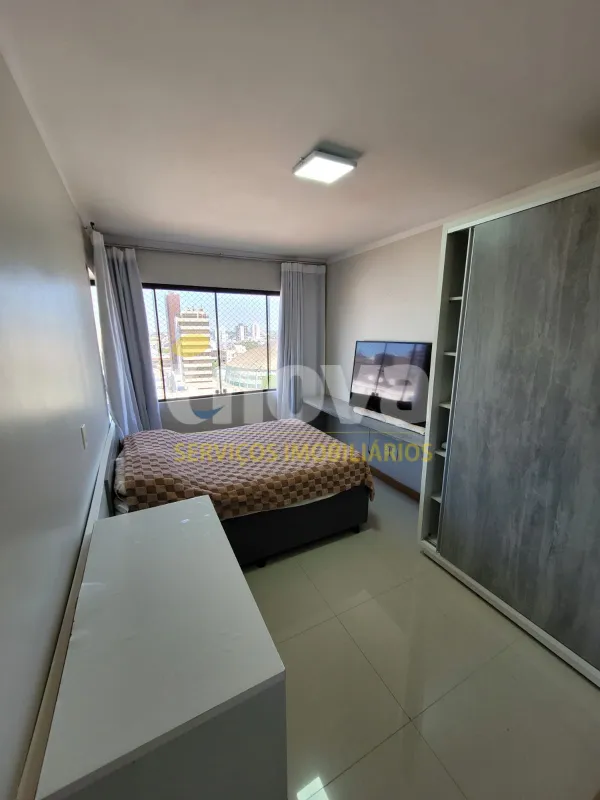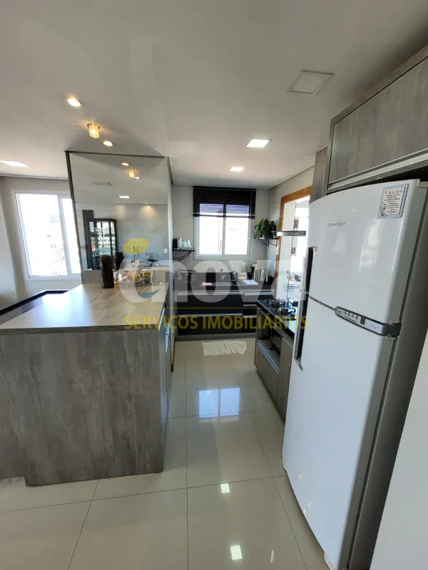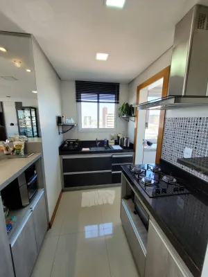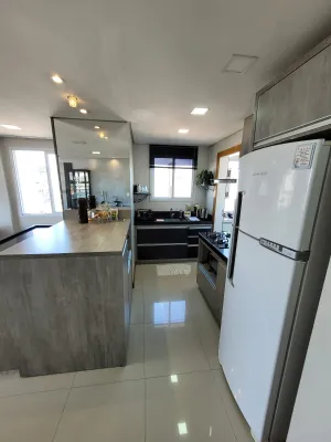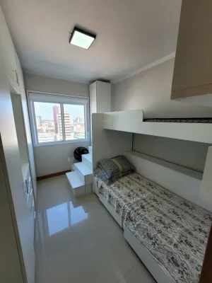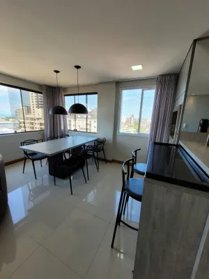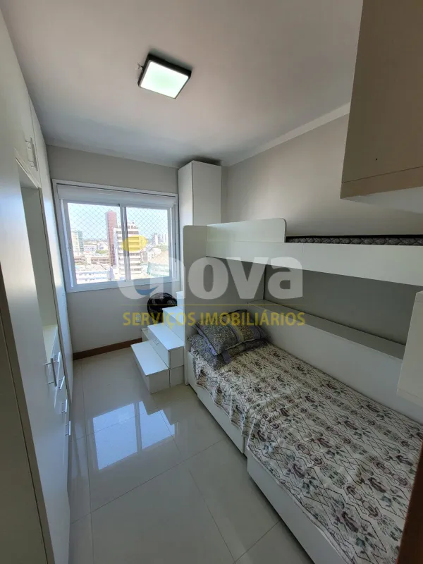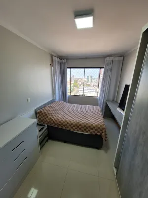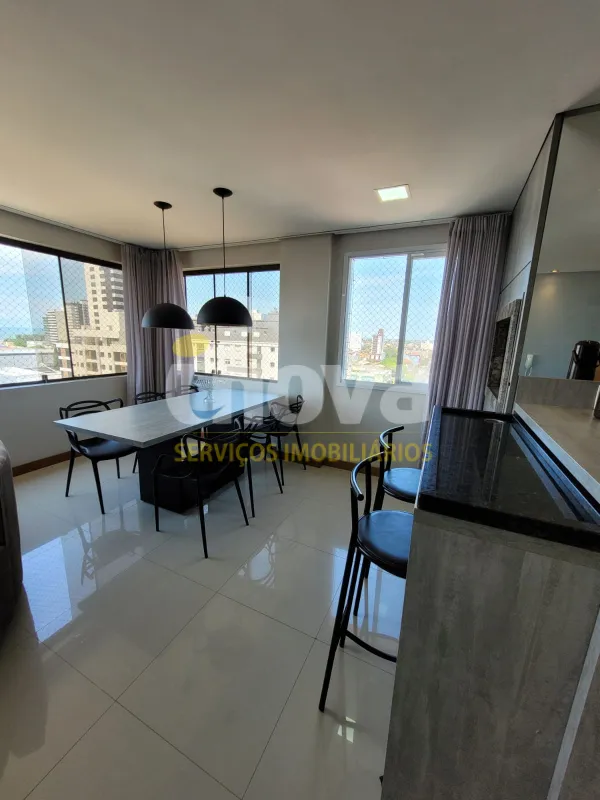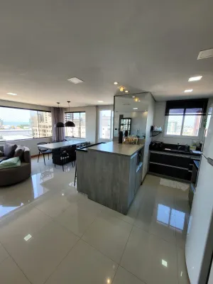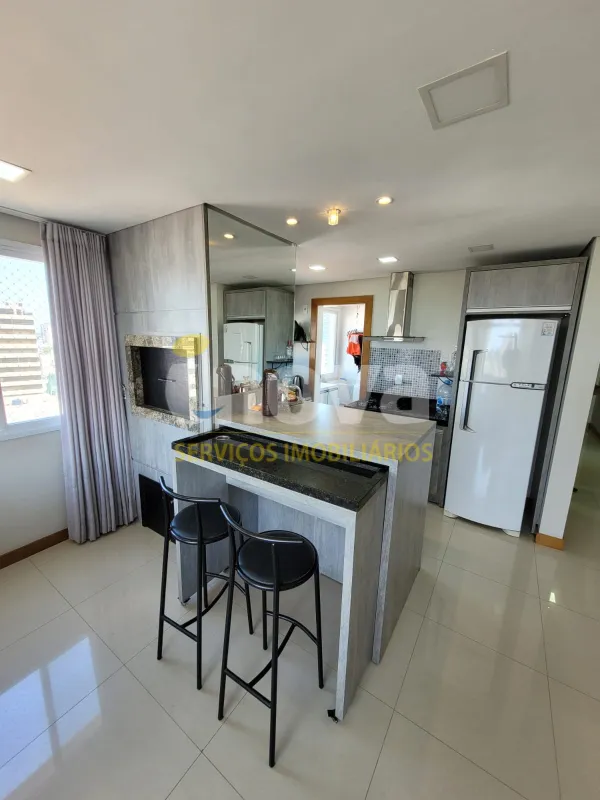 No centro, com 2 dormitórios, sendo 1 suíte, sala de estar e jantar integrado com a cozinha, churrasqueira, área de serviço, banheiro social, 2 garagens, mobiliado, prédio com piscina, salão de festas, academia, espaço kids, zelador e 2 elevadores.