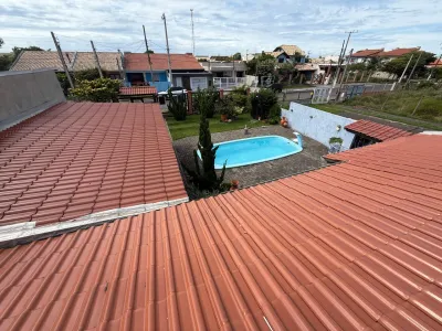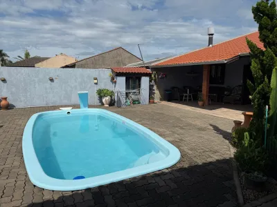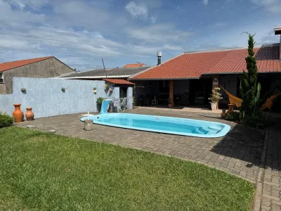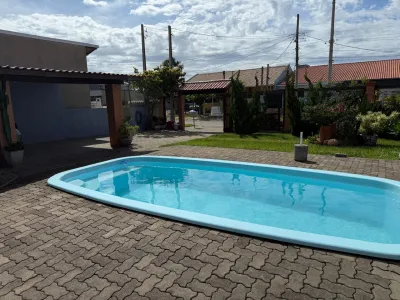 Bela casa no centro de imbé , composta de 3 suítes mais um lavabo!! piscina, pátio grande, garagem para 3 carros coberta , semi mobiliada, ampla, churrasqueira..