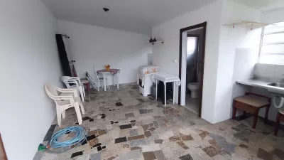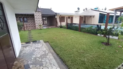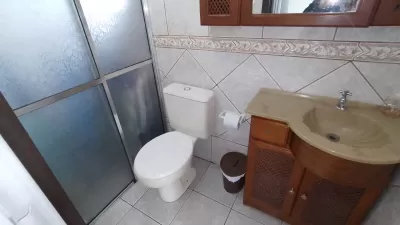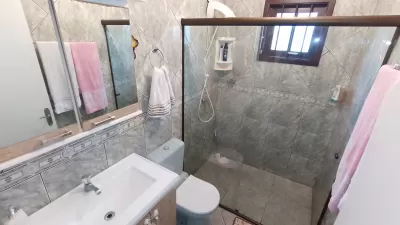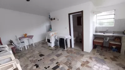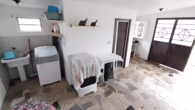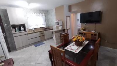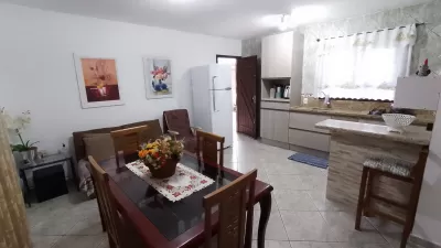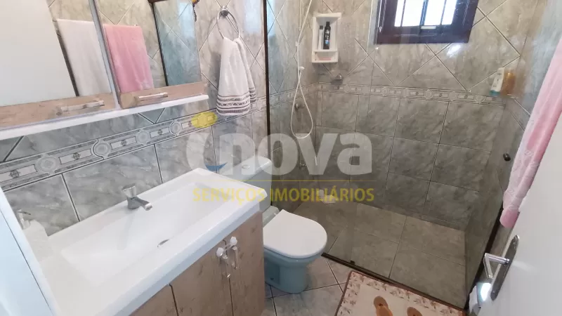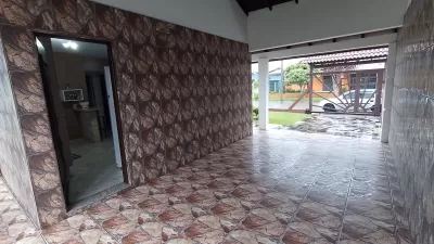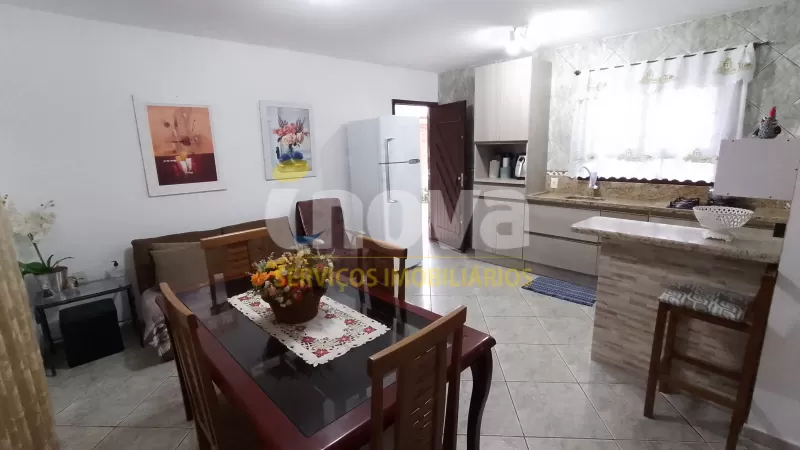Casa em alvenaria, com 02 dormitórios, sala, cozinha, banheiro social, garagem, estacionamento para carro, pátio cercado e garagem fechada nos fundos com área de serviço, banheiro.